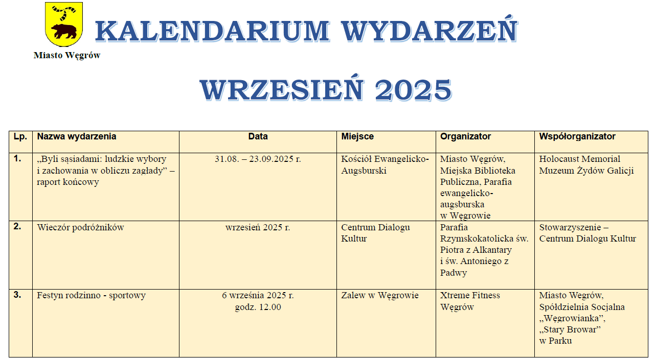 Kalendarium wydarzeń wrzesień 2025Archiwum